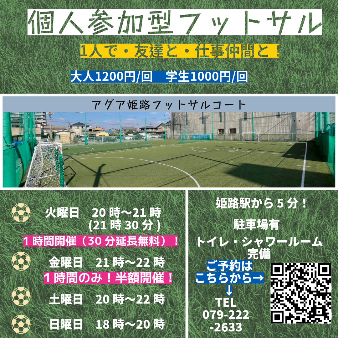 アグア姫路では個人参加型フットサル「個サル」開催中です⚽️