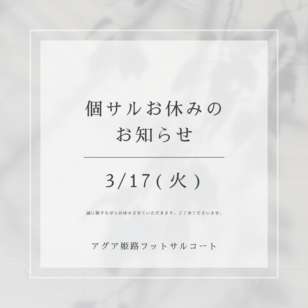 3/17の火曜個サルですが誠に勝手ではございますが、施設都合によりお休みさせていただきます。